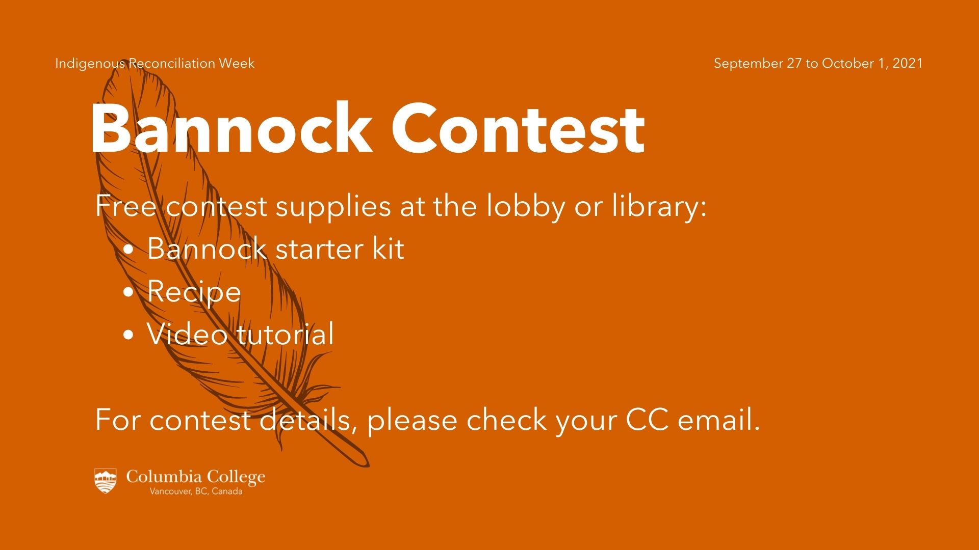 - Snap a picture of yourself with your bannock and email it to zchau@columbiacollege.ca to be entered for a prize.