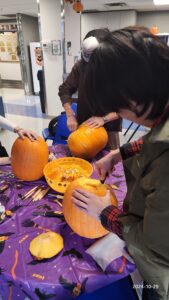On Tuesday, students got together after school for a pumpkin carving party! For those new to pumpkin carving, here are some basic steps we followed: