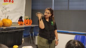 We learned some fascinating facts—like the differences between turtles and tortoises—and got to see a range of creatures up close. The show's stars were a tarantula, a ball python, a hermit crab, a stick bug, and a hedgehog. It was educational and thrilling, adding an extra dose of excitement as Halloween approached.