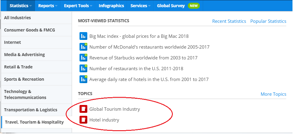 Select the topic you are interested in for example “Travel, Tourism & Hospitality.” A list of more specific topics will appear: